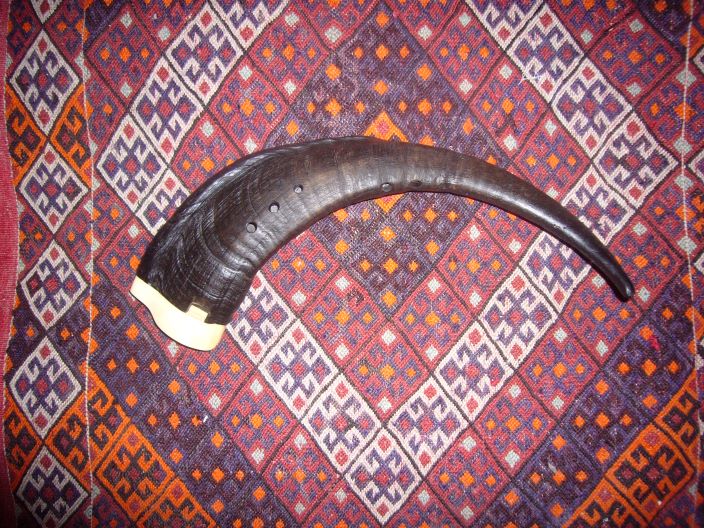 Die Gemshörner aus meinem Sortiment habe ich durch ein wunderschön klingendes Bordungemshorn erweitert. Zwei Gemshörner sind so untereinander verbunden, dass der Spieler zur gegriffenen Flöte parallel einen Grundton (Bordun) als Begleitung hat. Warme, weiche und volltönende Musik wird dadurch möglich.